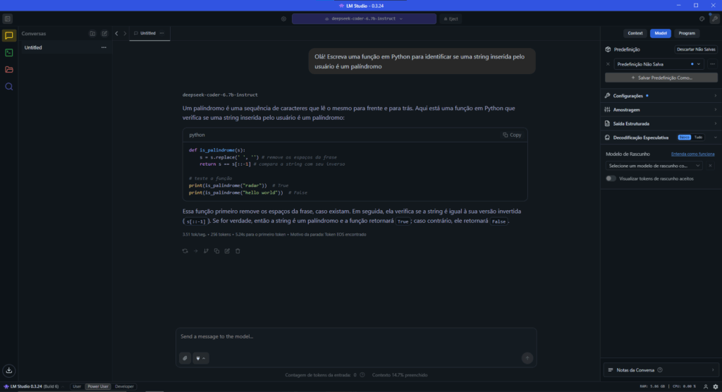 É gratuito? Sim! Tanto o LM Studio, o Ollama e o modelo DeepSeek Coder (e muitos outros) são gratuitos para uso pessoal.